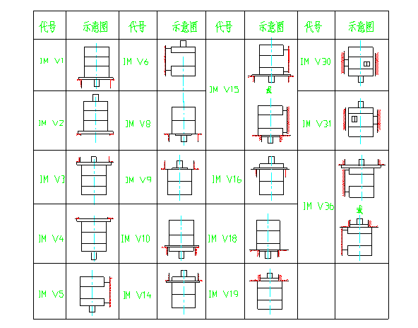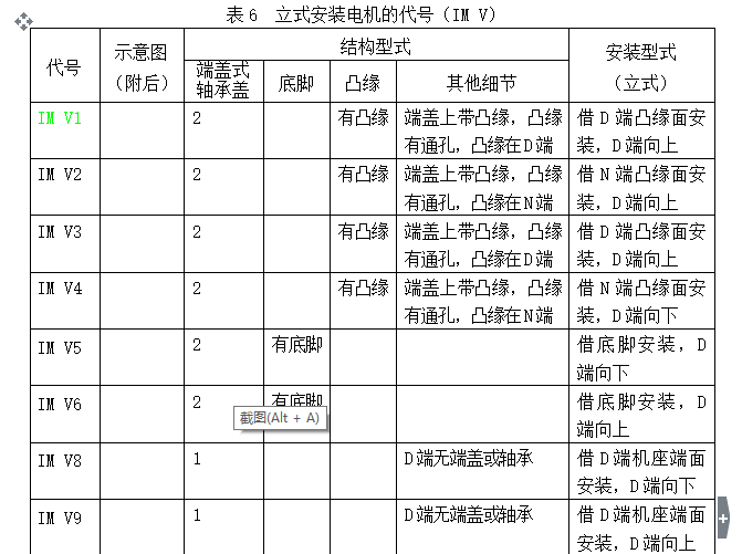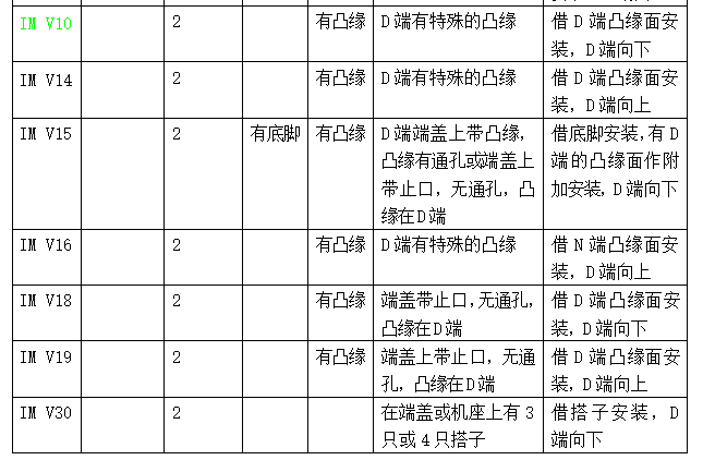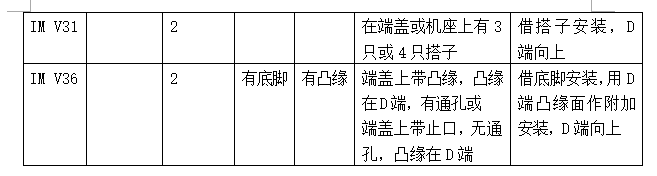 立式安装南阳防爆电机的代号由字母IM(国际安装)空一格,随后为字母V和1位或2位数字组成,见表6。