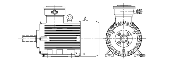 2.1 南阳防爆电机结构及安装型式应符合GB/T 997-2008 《旋转电机结构及安装型式(IM代号)》的规定。