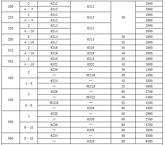 1. 在装配轴承时,2极电机油脂用量为轴承室的一半,4极及以上为3/4,这些数据只适用于50Hz。